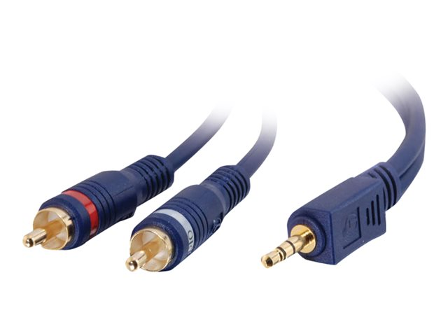 Velocity 3.5mm stereo to RCA stereo audio cables from C2G are specifically designed to provide quality music transfer from stereo audio devices. With this cable you can connect a PC sound card, portable CD player, MP3 player, iPod, or any mini-stereo audio device with 3.5mm jacks to other audio devices with RCA audio jacks.
