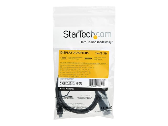StarTech.com 3ft/1m USB C to DisplayPort 1.4 Cable 8K 60Hz/4K, Bidirectional DP to USB-C or USB-C to DP Reversible Video Adapter Cable, HBR3/HDR/DSC, USB Type C/Thunderbolt 3 Monitor Cable