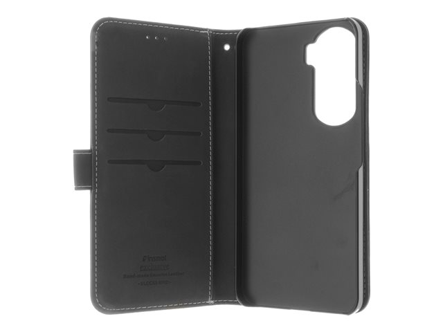 Stylish leather flip case with three credit card slots and a pocket.