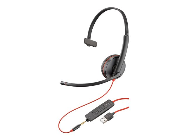 Blackwire 3200 Series - hodesett - on-ear - kablet - USB-A, 3,5 mm jakk - svart - Skype Certified, Cisco Jabber Certified, Avaya Certified