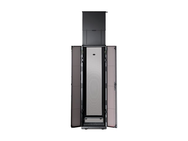 Vertical Exhaust Duct (VED) system for NetShelter SX is a low cost easy to install solution that mounts to the top rear of NetShelter enclosures to capture and return hot exhaust air to room cooling systems.