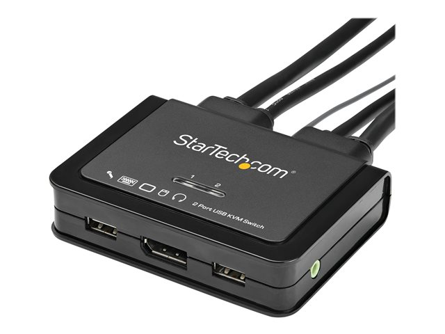 StarTech.com 2 Port DisplayPort KVM Switch, 4K 60Hz, Compact Dual Port UHD DP 1.2 USB Desktop KVM Switch w/ Integrated 4ft Cables & Audio, Bus Powered & Remote Switching, MacBook ThinkPad