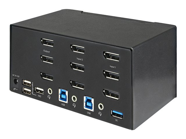 StarTech.com 2 Port Triple Monitor DisplayPort KVM Switch, 4K 60Hz UHD HDR, Desktop 4K DP 1.2 KVM with 2 Port USB 3.0 Hub (5Gbps) & 4x USB 2.0 HID Ports, Audio, Hotkey Switching, TAA