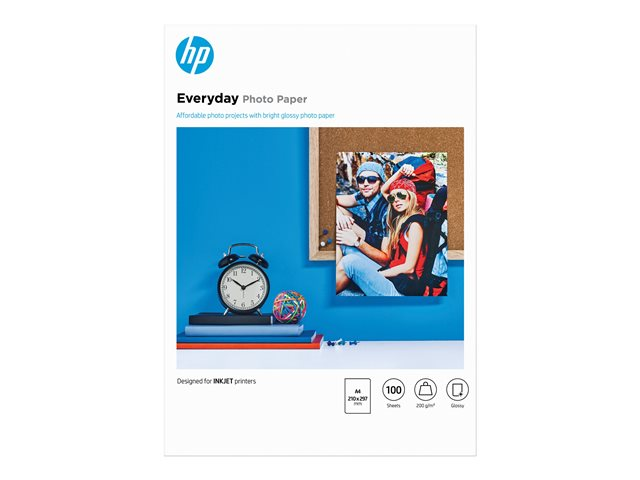 HP Everyday-fotopapir gir fargerike fotoprosjekter til en lav pris. Dette resirkulerbare, glansede papiret tørker raskt og kan brukes på hvilken som helst blekkskriver. Bruk HP Photo Creations-programvaren til å lage kalendere, fotokuber og annet.