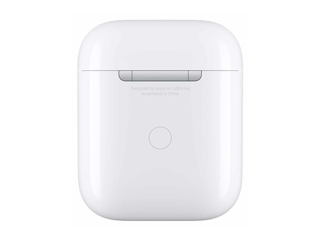 Det er enkelt å lade med det trådløse ladeetuiet. Du legger AirPods i etuiet, og legger etuiet på en kompatibel ladeplate. LED-lyset på fremsiden indikerer at AirPods lades. Og når du ikke har tilgang til en ladeplate, kan du bruke en Lightning-tilkobling til lading. Det trådløse ladeetuiet fungerer med alle generasjoner av AirPods og kan lade dem flere ganger.