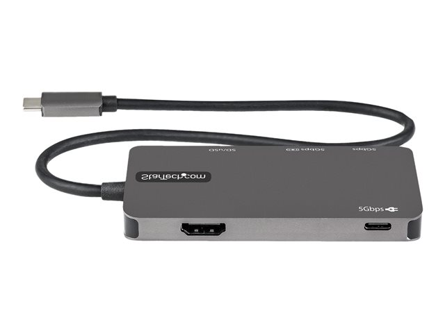 StarTech.com USB C Multiport Adapter, USB-C to 4K 30Hz HDMI, 100W Power Delivery Pass-through, SD/MicroSD Slot, 3-Port USB 3.0 Hub, USB Type-C Mini Dock, 12" (30cm) Long Attached Cable