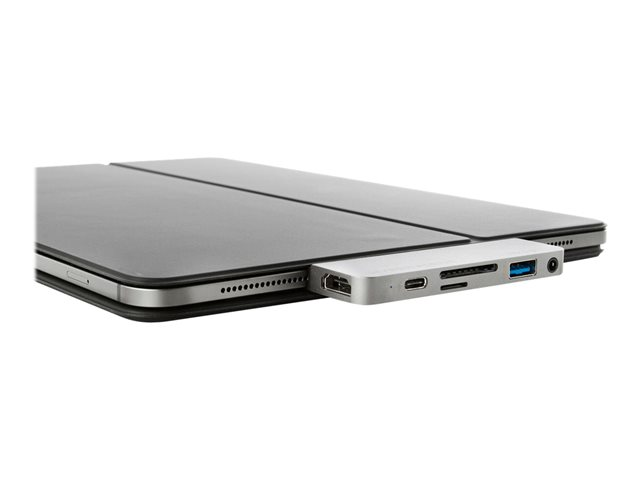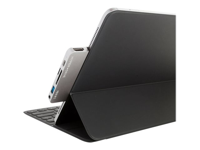 World's first removable and replaceable grip secures the hub onto your iPad Pro and allows compatibility with screen protectors and protective cases.