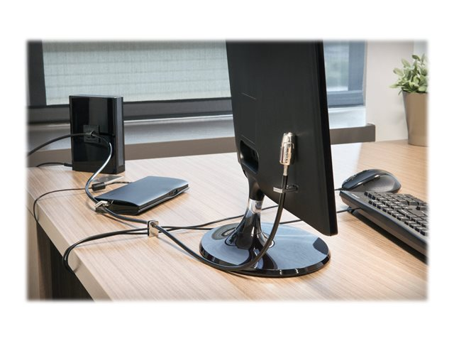 - 2.4m (8-foot) carbon steel cable is cut-resistant and anchors to desk, table or any fixed structure