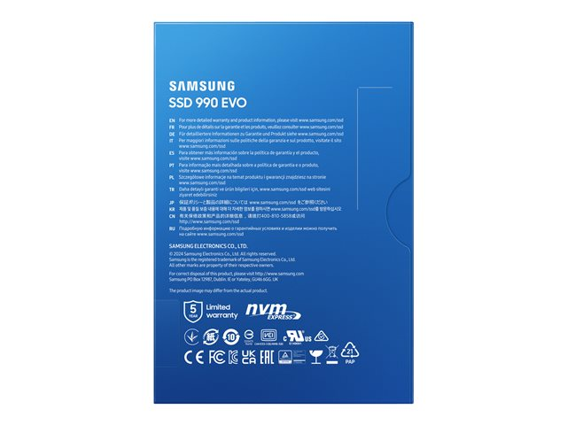 Samsung 990 EVO MZ-V9E2T0BW - SSD - kryptert - 2 TB - intern - M.2 2280 - PCIe 5.0 x2 (NVMe) - 256-bit AES - TCG Opal Encryption 2.0